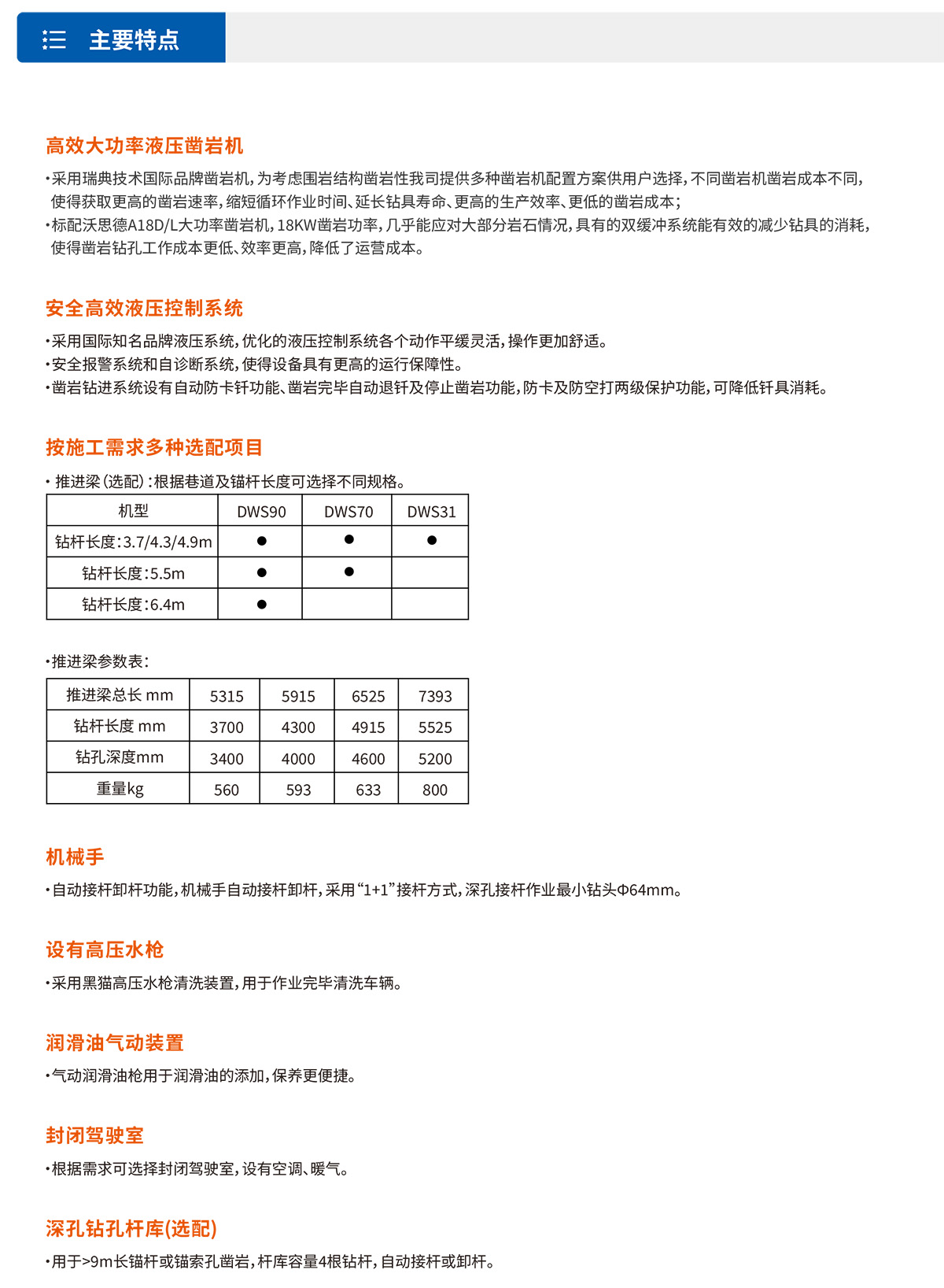 DWS系列單臂錨桿鑿巖臺(tái)車