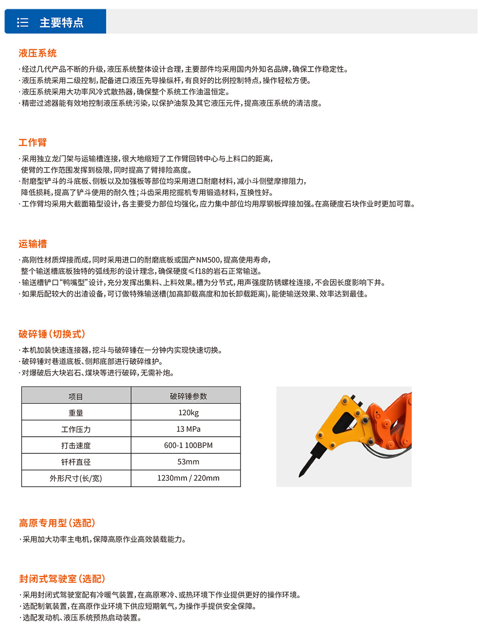 中?型履帶式挖掘裝載機(jī)(扒渣機(jī))主要以60-150型為主,專為礦?、引?、國(guó)防、?速或?鐵輔助隧道?設(shè)計(jì)研發(fā),具有經(jīng)濟(jì)性較?,設(shè)備靈活性較好的特點(diǎn)。設(shè)有32°?坡度專?機(jī)型、普通平巷機(jī)型、雙動(dòng)?、?原專?等多種功能機(jī)型可選擇。可以全斷??作,不留死?,不需??輔助清理?作?。運(yùn)渣采?鏈條刮板式,輸送運(yùn)轉(zhuǎn)平穩(wěn),排渣能?強(qiáng),且采?半封閉式裝配?式,維護(hù)?便。