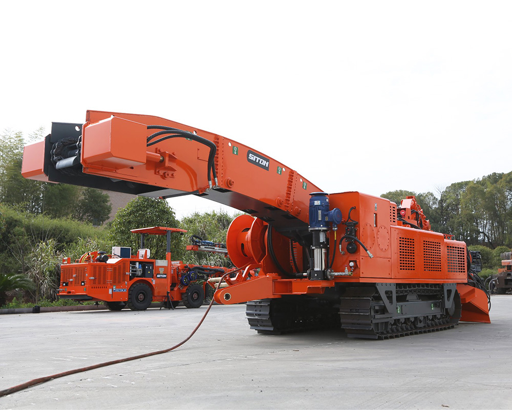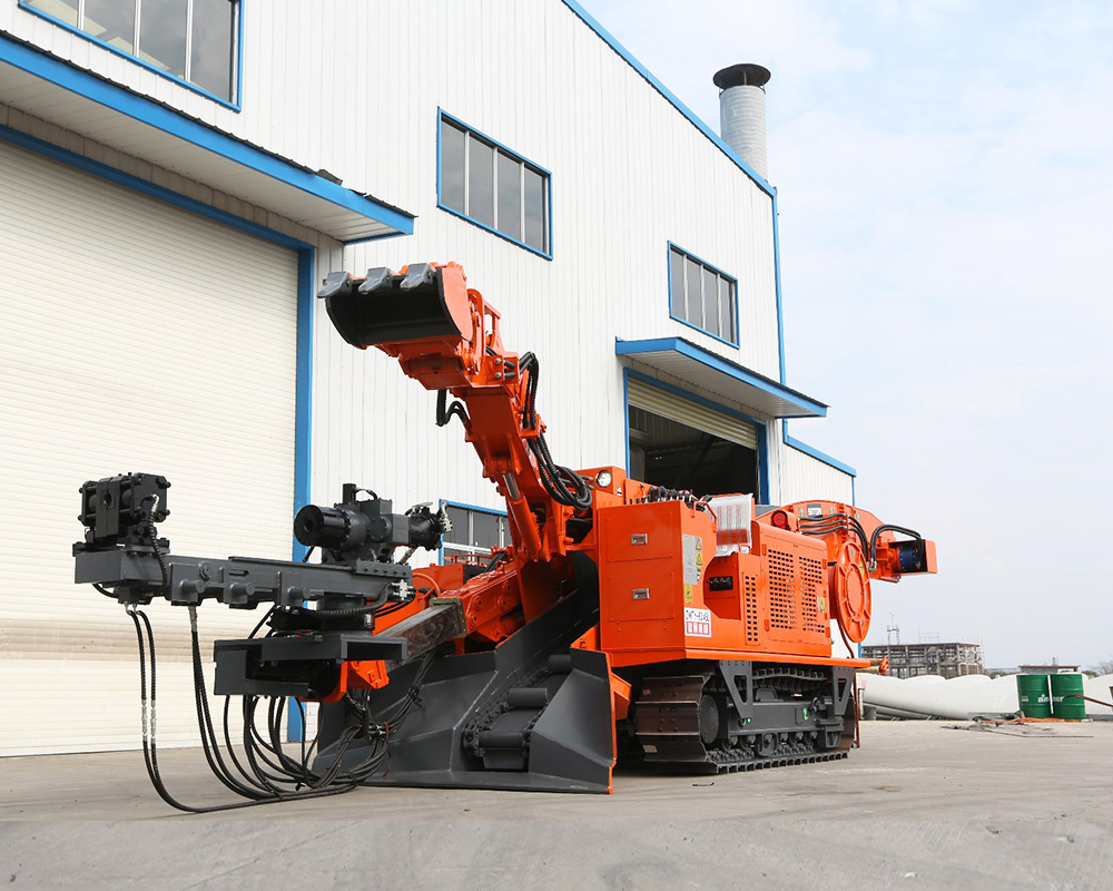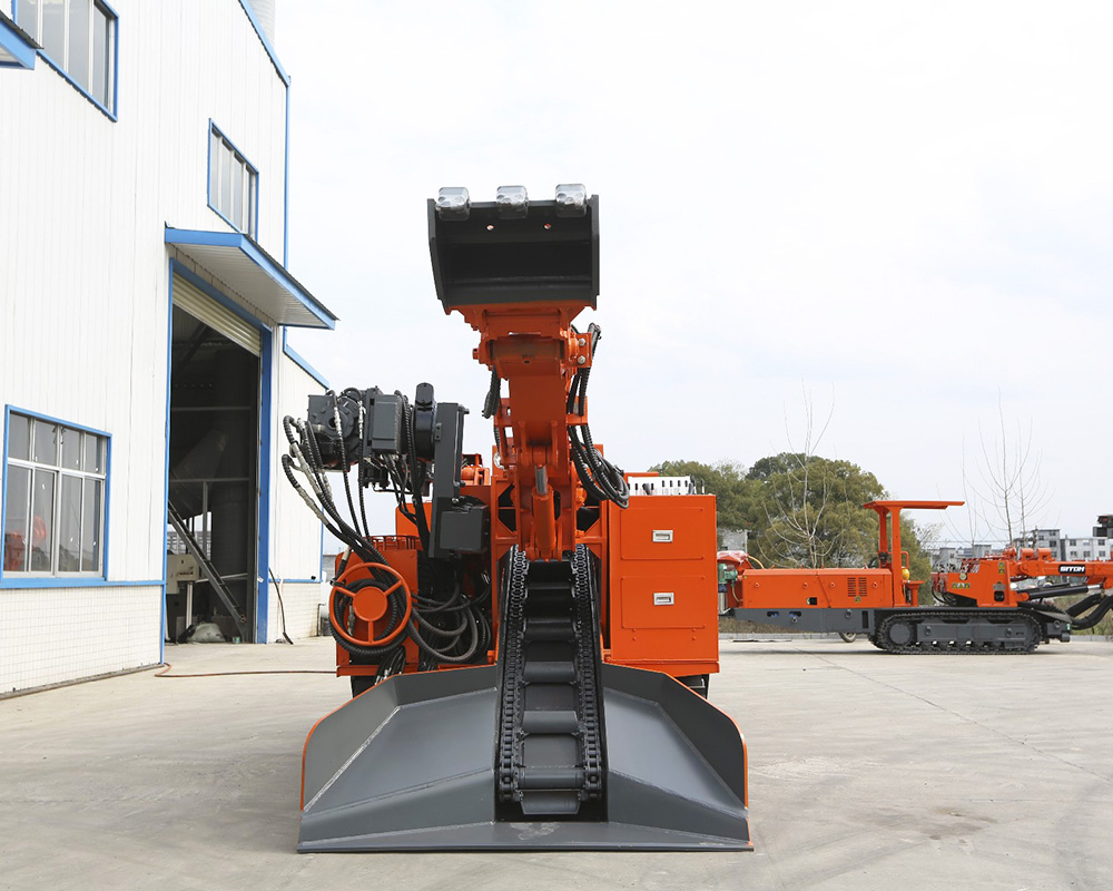 CZWTY-80煤礦用挖裝探機組是一種集裝載、鉆探兩種功能于一體的作業(yè)裝備。用于礦山巖巷、引水洞以及其它工程巷道中的掘進作業(yè)。其應用提高了掘進速度,降低了工人的勞動強度,掘進施工作業(yè)提高了安全,很好的實現(xiàn)了巖巷掘進的機械化作業(yè)需求。同時解決了中小巷道多種設備錯不開車的問題。挖裝探機組鉆臂可對巷道迎頭工作面鉆探測孔,也可以鉆瓦斯釋放孔。反鏟機構扒臂扒取遠處的巖石,送入刮板運輸機,刮板運輸機從尾部將巖石卸入礦車或皮帶運輸機中,也可以用扒斗來清理工作面。